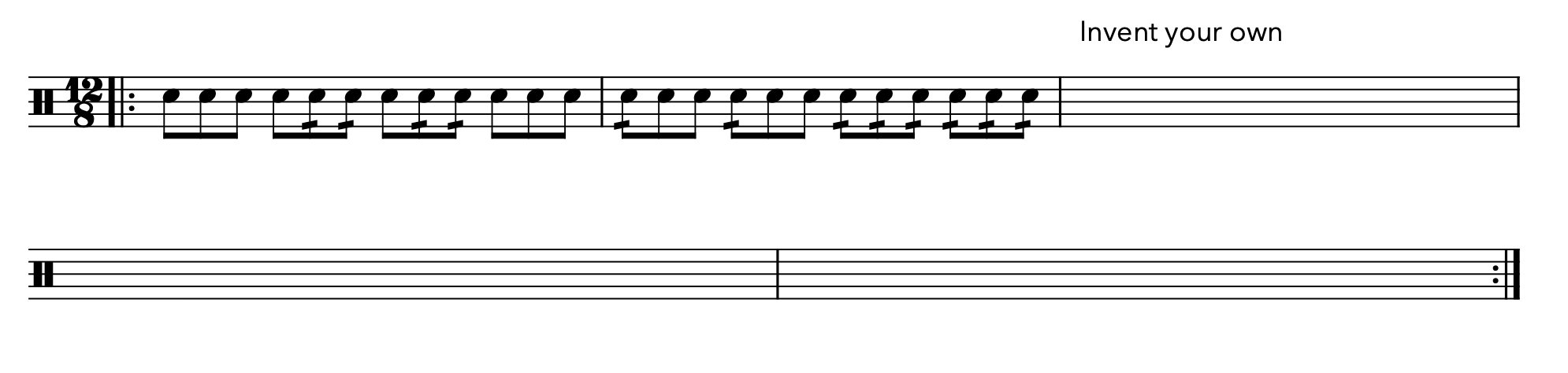 My first draft. In this exercise, I use scansion (the notation used in poetry to denote accented and unaccented syllables) to indicate stressed and unstressed notes.